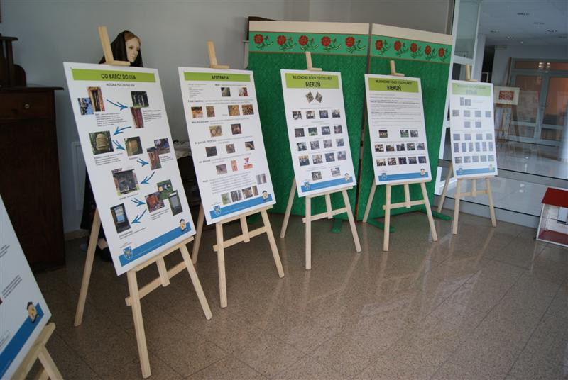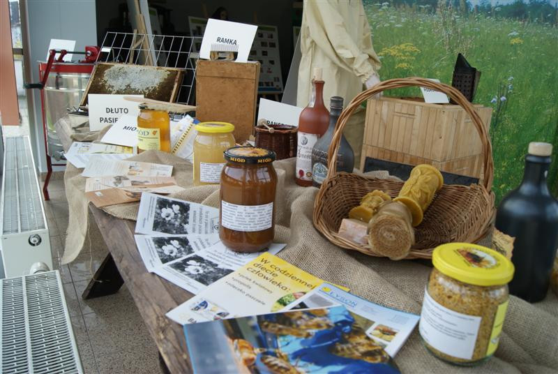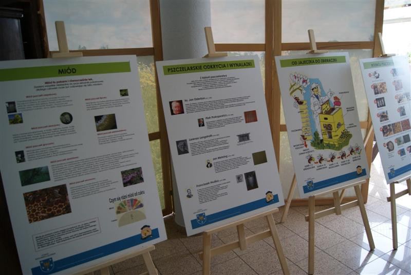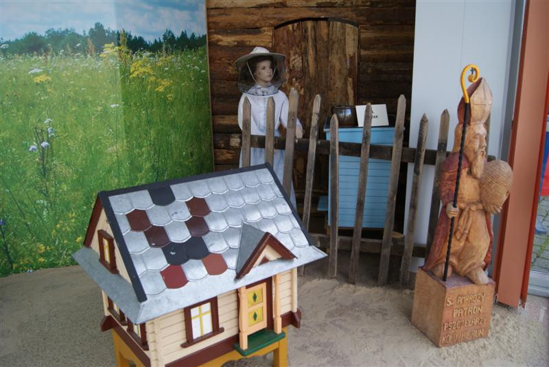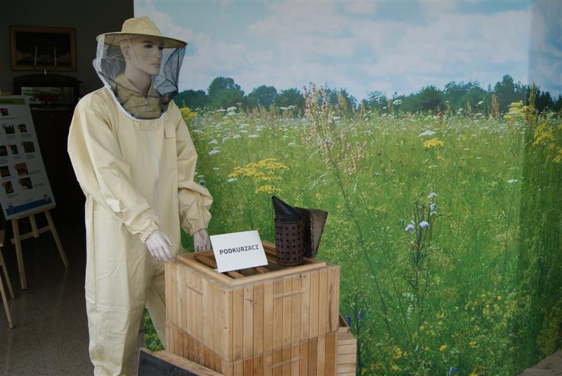 Woskowe świece, miody, pyłek, sprzęt pszczelarski, kompletny strój pszczelarza, a nawet figurę św. Ambrożego i ule - wszystko na tle kwitnącej wiosennie łąki. Te oraz wiele innych eksponatów można zobaczyć w izbie regionalnej w naszej bibliotece. Na planszach natomiast przedstawiono ciekawe informacje na temat pszczelarstwa.